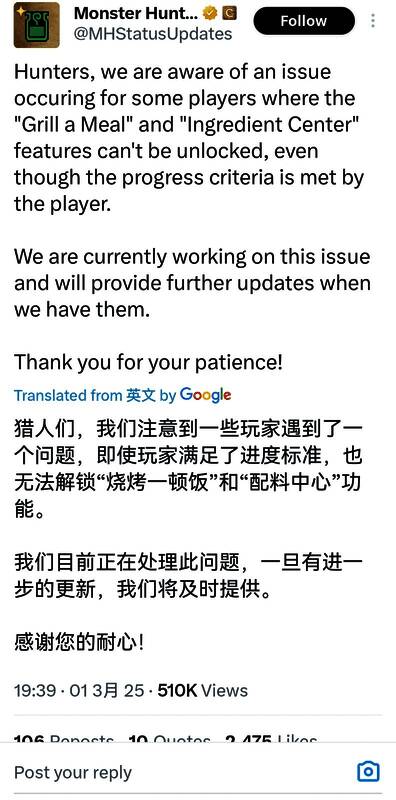 此前已有多个案例表明,《怪物猎人:荒野》一个至关重要的NPC不会出现在他们应该出现的地方,卡普空已经发现了这件事并对此进行了修复。
