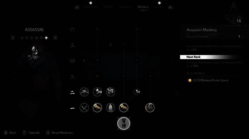 精通点数用于解锁角色专属技能树,例如忍者技能与武士刀专精,玩家可以通过这些技能树解锁新连招,提升战斗效能并激活致命技能。而知识等级则通过活动(如祈祷、收集品探索)提升。在冒险旅途中,玩家可以随时重置技能点,以适应新的游戏风格。