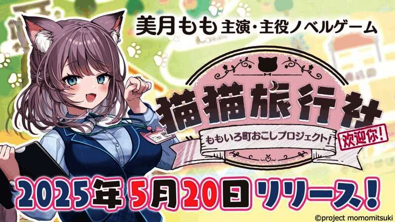 CyberStep旗下的视觉小说游戏品牌Rabbitfoot宣布了《猫猫旅行社:蜜桃镇振兴计划》(Neko Neko Travel Agency: Peachy Town Revitalization Project),这是一款全程配音的视觉小说游戏,由虚拟主播美月もも担任主角。该游戏将于5月20日登陆NS平台,并通过Steam和DLsite在PC平台上推出,支持简体中文、繁体中文、英语、日语以及其他语言。