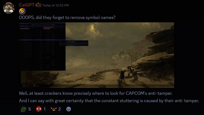 推主@Pirat_Nation发推,称《怪物猎人:荒野》PC版有三个DRM,其中有两个D加密系统,外加Capcom自家的反篡改系统。