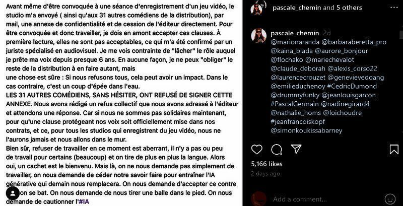 “我现在要被迫放弃我已经配音了近 6 年的角色。我无论如何也不可能强迫其他演员也这么做,但有一件事是肯定的:如果我们都拒绝,可能会产生影响。否则,一切都将是徒劳。”