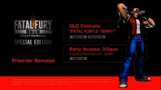 提前预购的玩家将在4月21日起即可提前上线游玩。同时在4月23日前预购,还可免费获得特瑞·博加德红色棒球帽经典皮肤。感兴趣的玩家们可以点击链接将《饿狼传说:群狼之城》添加至愿望单。