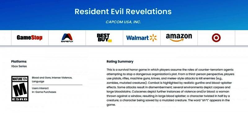 继《生化危机4》、《生化危机5》、《生化危机6》以及《生化危机:起源合集》之后,ESRB对《生化危机:启示录》的Xbox Series X | S版本进行了评级。这样看来卡普空将在系列30周年之际,在现代主机上重新发行所有列出的游戏。