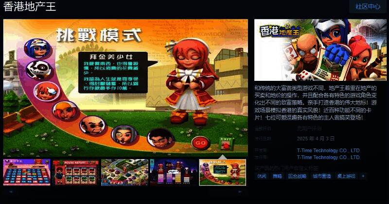 今日(2月26日),光谱大富翁作品《香港地产王》Steam页面上线,预定2025年4月3日发售,游戏支持简繁体中文,感兴趣的玩家可以点击此处进入商店页面。