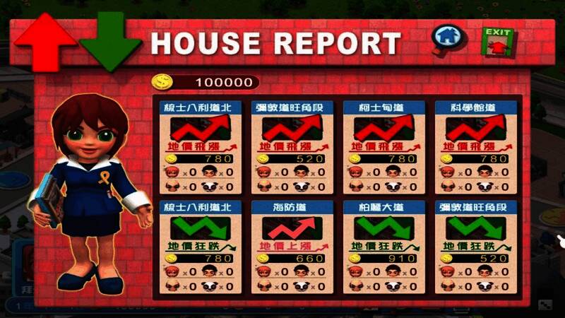 这个游戏非常真实地模拟香港的一景一物,你会看到广九铁路终站外那栋古色古香的钟楼,香港高中生最爱探险的张保仔洞,和全香港为之疯狂的赛马场。你可以买下黄金海岸酒店、女人街、又一城甚至是最新最大的如心广场,都可以纳入你地产王国的版图。不管你有没有去过香港,香港地产王一定能让你身临其境,仿佛置身这块购物天堂;如果你就是道地的香港人,那你一定对这款为香港玩家量身打造的Game有更多的感触、更深的认同。