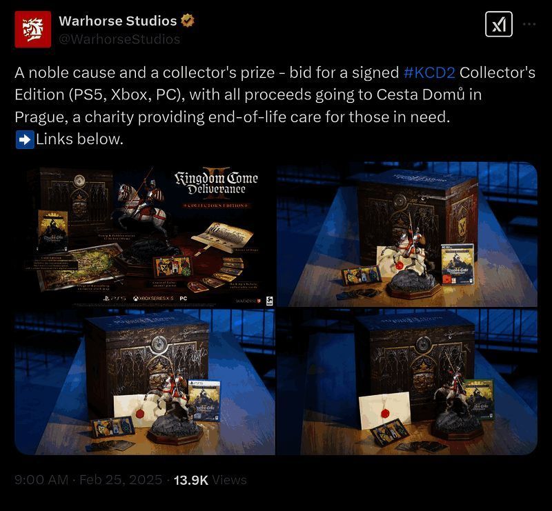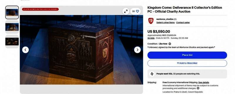 战马工作室正在拍卖《天国:拯救2》收藏版(附带签名)——分别有PC、PlayStation 5和Xbox Series X/S三个版本。本次仅参加拍卖的竞价现已超过了3500美元。