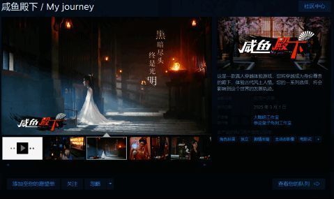 古风实景互动游戏《咸鱼殿下》现已登陆Steam平台,预计发售时间2025年3月1日。