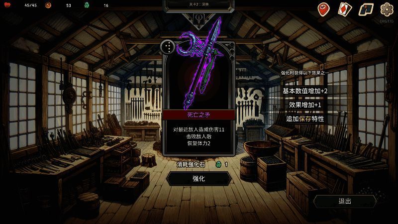 通过强化系统,武器和防具可以解锁新的技能,或是进一步强化自身的优势,