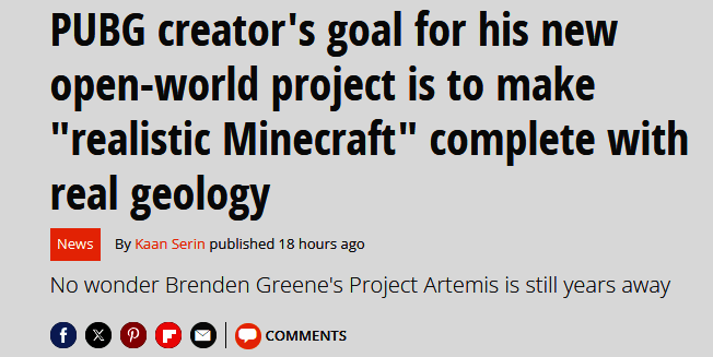 ·《Project Artemis》是这位大佬开发者的最新游戏项目,Greene表示,所谓的真实版《我的世界》,不仅仅只是游戏像真实化后的《我的世界》玩法,开发组更加想传达来自现实中的生态、地质学的概念精要,具体都会体现在游戏中。