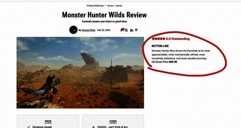 《怪物猎人:荒野》的媒体评分预计将在北京时间2月24日晚上23:00解禁,不过,外媒PC mag却提前发布了评测文章,虽然目前该文章已被撤下,但还是有网友将关键信息保存了下来。