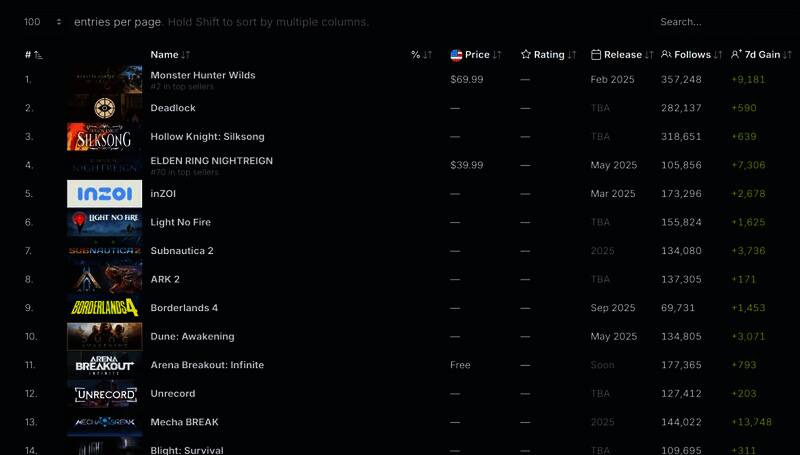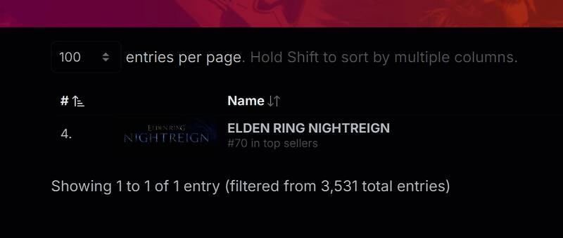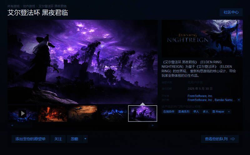 《艾尔登法环:黑夜君临》Steam全球愿望单排名第四