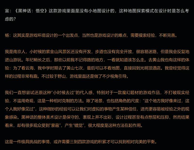 宣:《黑神话:悟空》这款游戏里面是没有小地图设计的,这种地图探索模式在设计时是怎么考虑的?