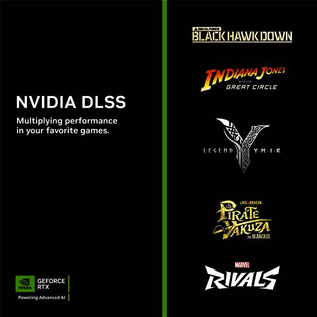 本周,《夺宝奇兵:古老之圈™》(Indiana Jones and the Great Circle™)及《漫威争锋》(Marvel Rivals)等游戏现已支持使性能倍增的DLSS 4。DLSS超分辨率及DLSS帧生成功能将为《尤弥尔传奇》(Legend of Ymir)、《人中之龙 8 外传:夏威夷海盗 》(Like a Dragon: Pirate Yakuza in Hawaii)和《遗失的记录:绽放与愤怒 》(Lost Records: Bloom & Rage)提供首日支持。