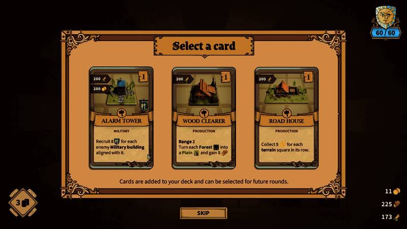 卡牌构筑系统丰富,为你的争权夺势之路添砖加瓦。80余张卡牌带有各不相同的升级项目、助力效果,是你建造、强化建筑的得力帮手。建筑类卡牌和科技类卡牌可带来特定的额外奖励,提升征兵效果等,为你的前路解锁更多可能性。卡牌选择繁多,你可以根据自己的战术构筑卡组,促进领地繁荣发展。