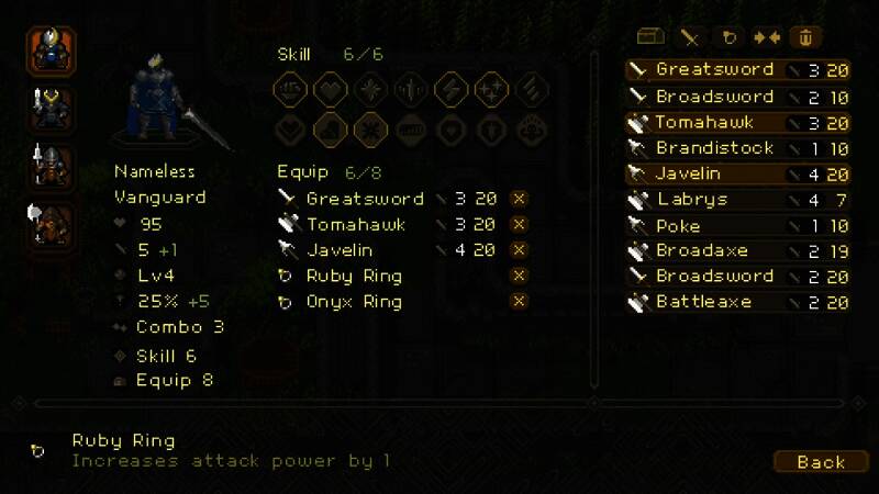 游戏还融入了RPG基础玩法,玩家可以为角色装备武器、戒指,并自定义技能以应对战斗。在游戏世界中,你需要在地图上策略性地规划各个单位的移动。