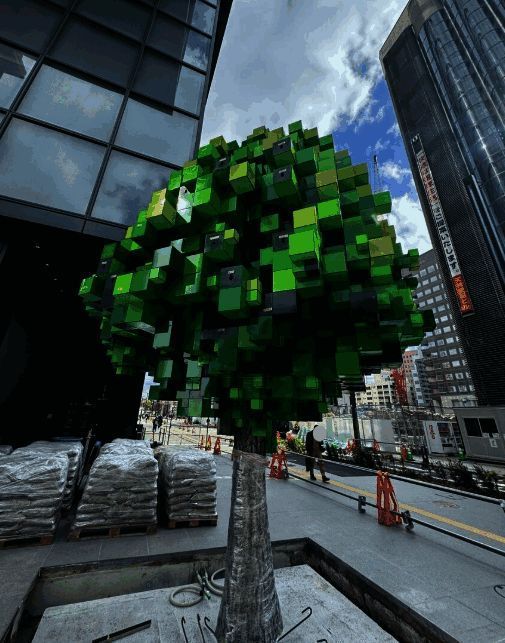 ·玩家在福冈市闹市街头近期发现了这个不可思议的“绿化树”,仿佛现实的高清晰世界忽然被《我的世界》侵入了。没错,那熟悉的马赛克树。