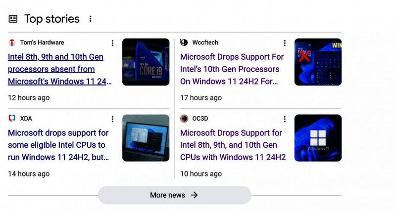 在微软最近的一项声明中,它将所有基于英特尔第8代、第9代和第10代处理器的OEM系统排除在Windows 11版本24H2支持列表之外。这很奇怪,因为英特尔的第8代、第9代和第10代CPU都支持TPM 2.0,这是Windows 11所需的基于硬件的安全功能。尽管如此,微软突然决定他们只支持英特尔第12代及更新的处理器。