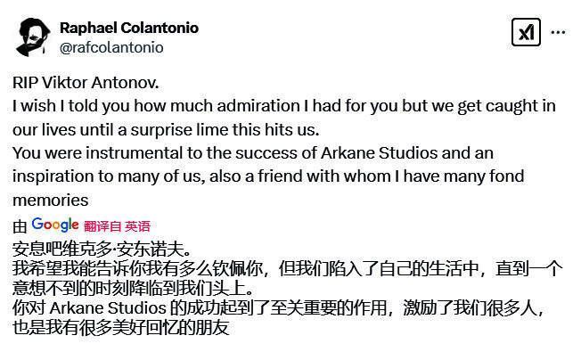 Arkane工作室创始人Raphael Colantonio也在X上确认了这一消息: