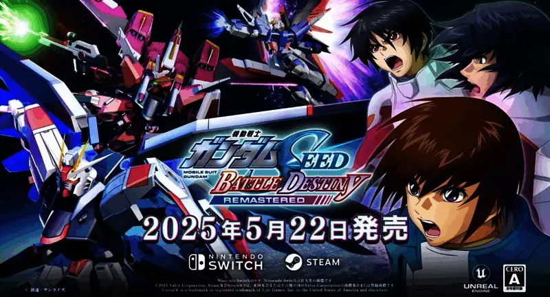 万代南梦宫日前宣布,经典游戏《机动战士高达SEED 激斗命运 复刻版》预定5月22日登陆Switch/Steam平台,敬请期待。