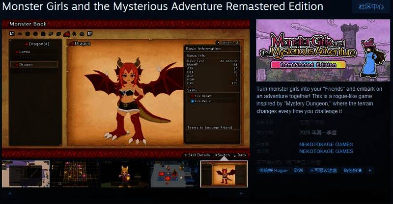 今日(2月15日),《魔物娘与不可思议的冒险 重置版》Steam页面公布,2025年第一季度发售,游戏暂不支持中文,感兴趣的玩家可以点击此处进入商店页面。