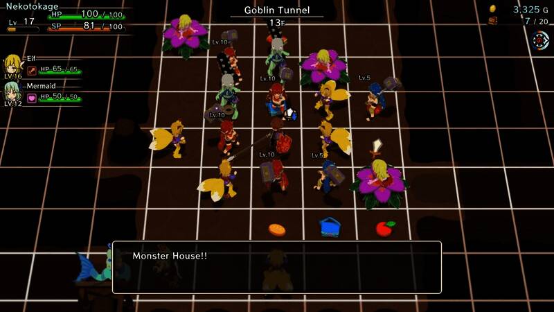 每当玩家采取行动时,其他魔物也会行动……通过回合制系统在地牢中前进!