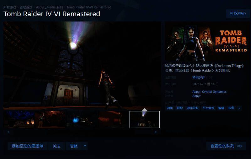 《古墓丽影4-6复刻版》首发在Steam上获得“特别好评”评价,该作由Aspyr和水晶动力联合开发,Aspyr发行。