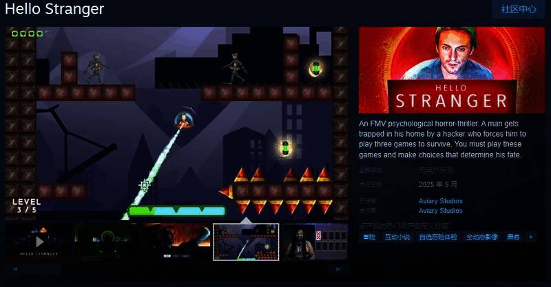 今日(2月14日),心理恐怖惊悚FMV《Hello Stranger》Steam页面公布,2025年5月发售,不支持中文,感兴趣的玩家可以点击此处进入商店页面。