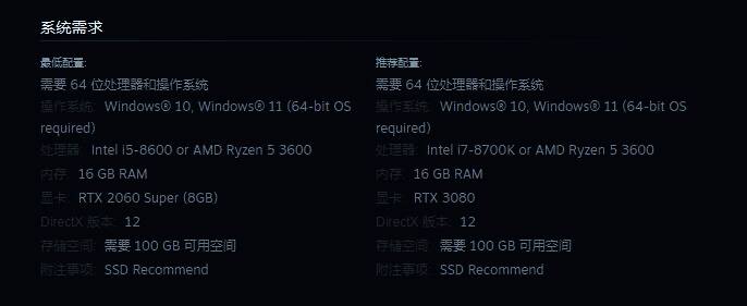 通过《合金装备3:重制版》Steam商店页面的更新,科乐美公布了该作的PC配置需求,从列表来看,这款游戏对硬件的要求似乎相当高,显卡的最低配置为RTX 2060S,推荐配置则来到了RTX 3080。