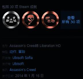 最近育碧为其多款游戏在Steam平台加入了成就系统,其中包括《刺客信条3:解放》。该作最初在PS Vita上发布,2014年1月16日在Steam上发售。