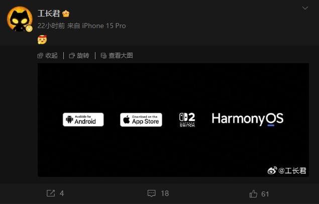 近日,网易首款仙侠纯单机游戏《剑心雕龙》游戏制作人工长君在微博上发布了一张图片,其中包括了四个平台:安卓、iOS、Switch 2和鸿蒙,这或是在暗示《剑心雕龙》将登陆这四个平台。