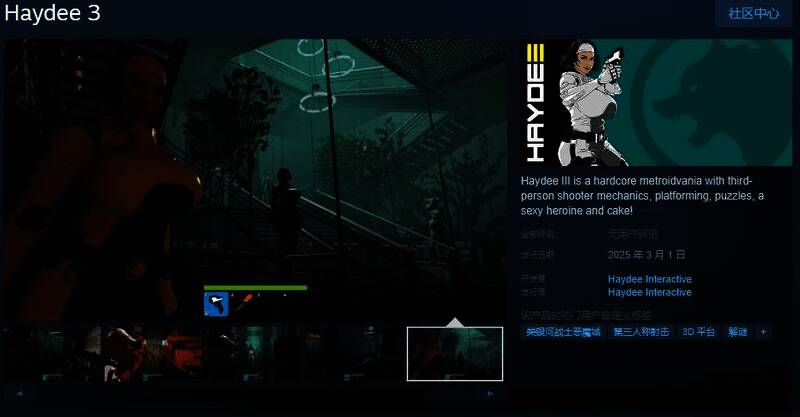 今日(2月11日),类银河战士恶魔城游戏《Haydee 3》Steam页面开放,2025年3月1日发售,暂不支持中文,感兴趣的玩家可以点击此处进入商店页面。
