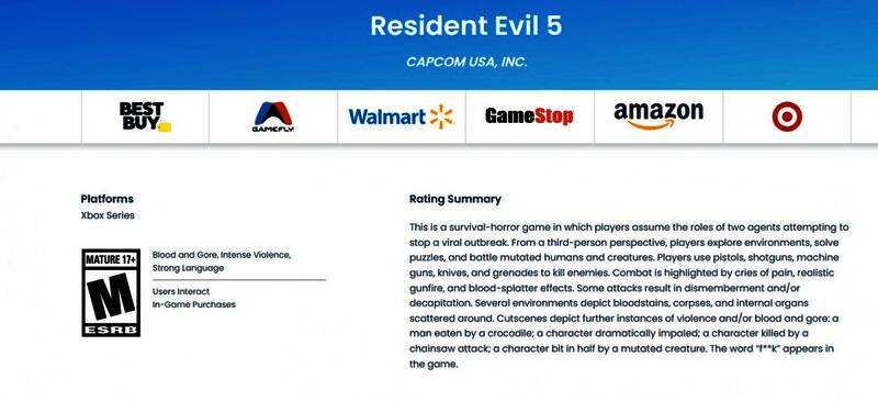 继上个月《生化危机6》通过ESRB分级后,最近又有一款老《生化危机》游戏通过了ESRB的分级,将登陆现代主机平台PS5和Xbox Series,它就是《生化危机5》。