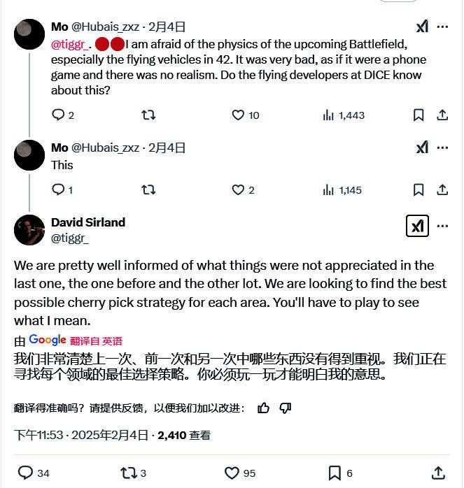 David Sirland迅速承认了这一批评,并表示DICE已经意识到了这些问题。他随后分享了工作室在游戏不同领域“择优选取”的理念。