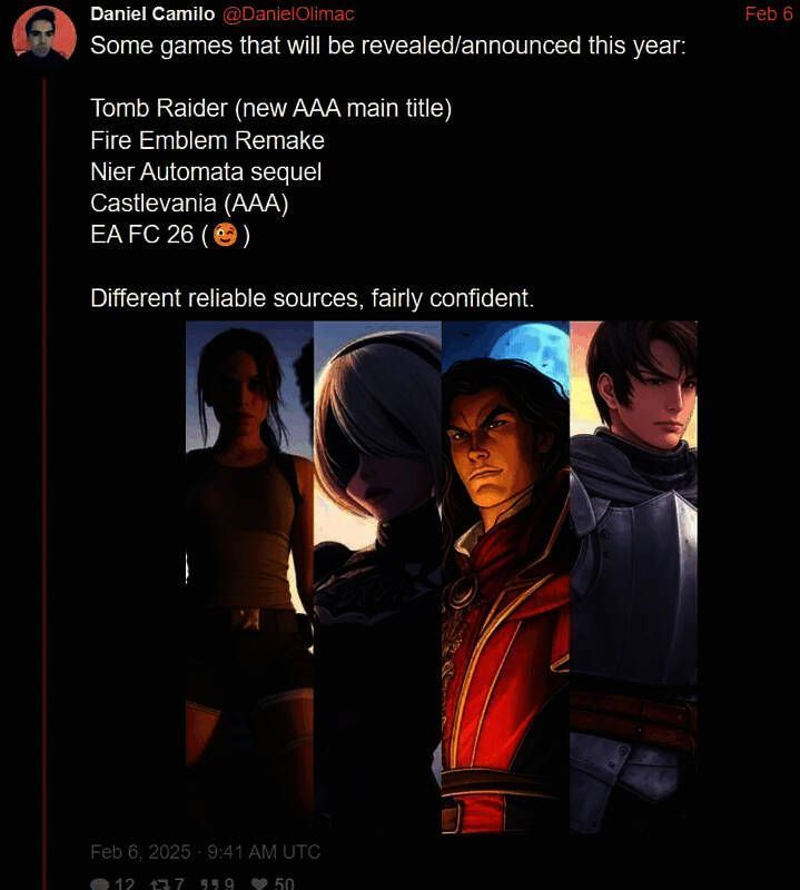 X上舅舅Daniel Camilo发帖爆料说,今年会有多个大作公布,他还刻意表示来自于不同的消息源,相当可靠: