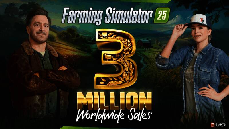 开发商Giants Software宣布《模拟农场25》全球销量现已突破300万份,全系列累计销量已突破4000万份。该作最初于2024年11月12日发售,登陆了PS5、Xbox Series X|S和PC,首周玩家数量就突破了200万。