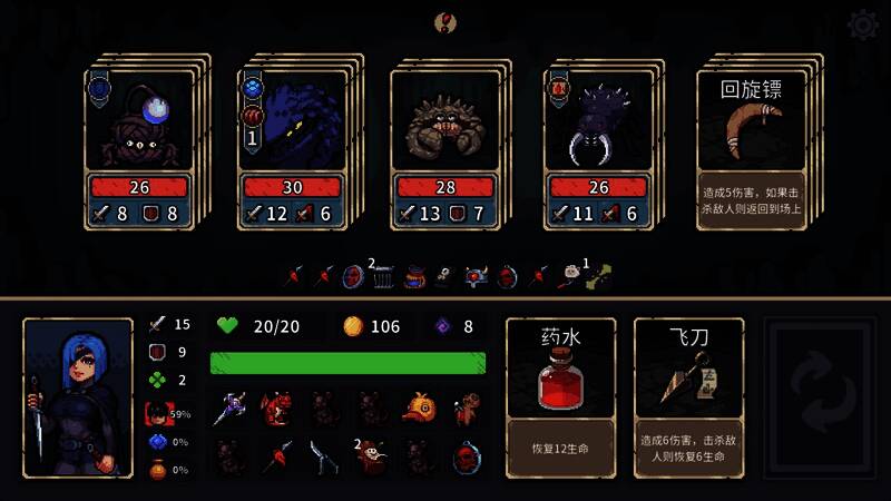 《迷失之径》是一款充满随机性的肉鸽卡牌游戏,每次游戏你将选择不同的冒险家,在随机生成的迷失世界中寻找真相,善用你的每一次选择,无论技能卡牌还是装备道具,都由你来决定它们的去留,像空当接龙一样挪动卡牌,你甚至可以选择两张道具卡牌将它们存放到背包中,在充满刺激与惊喜的翻牌之旅中,抵达迷失世界的终点!