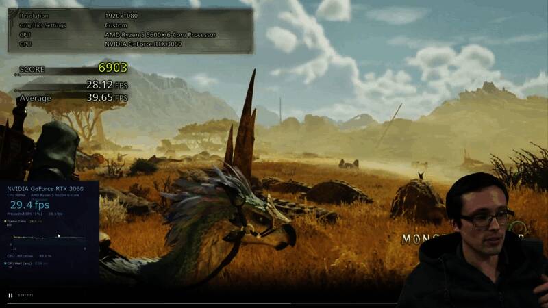 油管频道Daniel Owen分享了《怪物猎人:荒野》在RTX 3060搭配Ryzen 5 5600X上的性能分析。测试在三种不同的设置下进行:一种基于游戏的自动建议(中画质设置,DLSS设置为性能模式),一种是没有任何放大的中等画质设置,以及一种没有任何放大的超高画质设置。情况并不乐观,因为在所有三个测试中,该系统在密集的游戏场景中都难以保持稳定的60帧。