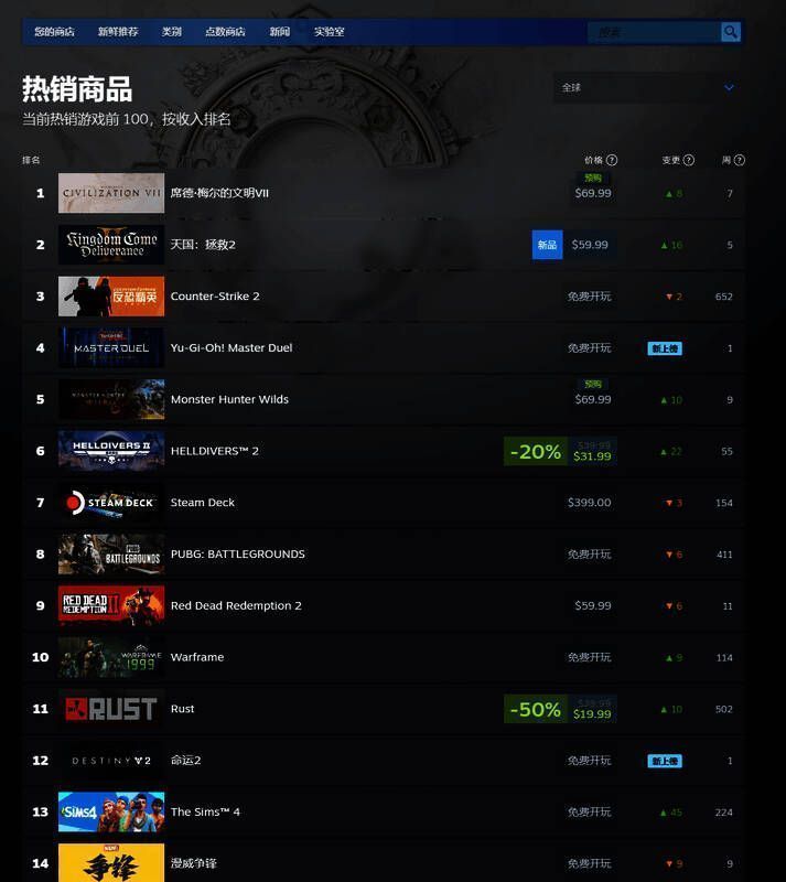 《天国:拯救2》目前在Steam全球热销榜上位列第二名,仅次于《文明7》。