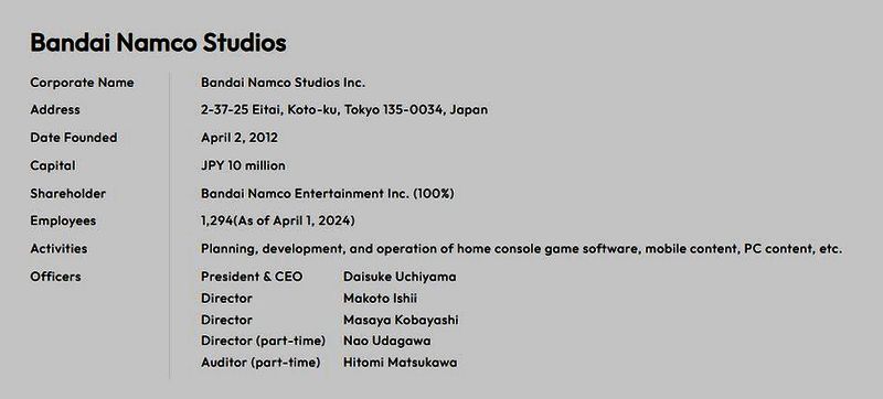 据媒体 Automaton 报道,根据万代南梦宫工作室官方网站分享的 2024 年 4 月 1 日的统计数据显示,公司当时的员工人数为 1294 人,而最新于 2 月 4 日更新的数据库则显示员工人数已降至 1177 人。