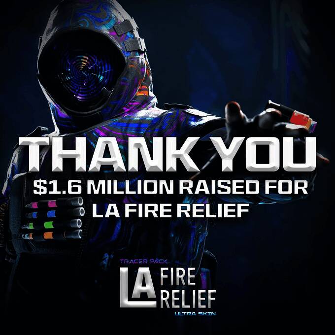 日前,《使命召唤》官方账号发帖,感谢了游戏玩家社区对于此次募捐的热烈支持。官方帖子写道:“通过购买洛杉矶火灾救援捆绑包,世界各地的玩家和粉丝共同筹集了超过160万美元。这些资金将直接捐赠给洛杉矶消防局基金会和直接救济组织,用于南加州的当地火灾救济和支持。谢谢大家!”