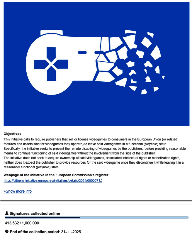 2024 年初,育碧宣布《飙酷车神》初代游戏关服,引发了许多玩家不满。许多玩家要求游戏在关服后发布线下模式,允许玩家无需联网能够继续游玩。这最终导致玩家发起了名为“StopDestroying Video Games”的活动,希望在欧盟将实时服务游戏停止支持后保持继续可玩加入消费者保护法。