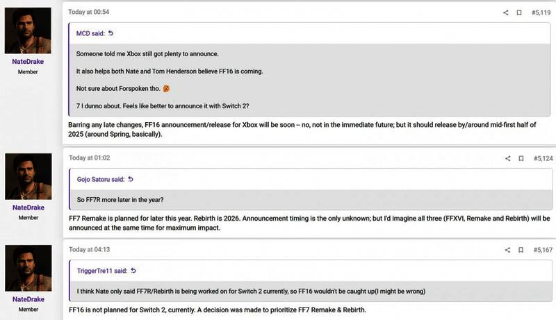 此外,NateTheHate还表示《最终幻想16》暂时没有计划登陆Switch 2,Switch 2更优先考虑的是《最终幻想7:重制版》和《最终幻想7:重生》。