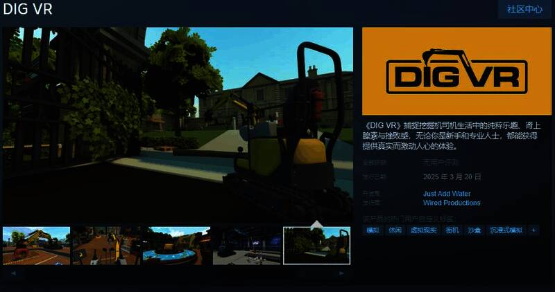 今日(2月6日),VR挖掘机模拟游戏《DIG VR》Steam页面公布,预计于2025年3月20日发售,游戏支持简繁体中文,感兴趣的玩家可以点击此处进入商店页面。