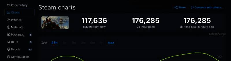 《天国:拯救2》目前在Steam上收到7310条评价,好评率高达92%,Steam在线峰值再进一步,从昨天的逼近16万发展到今天的17.6万(17万6285人)。