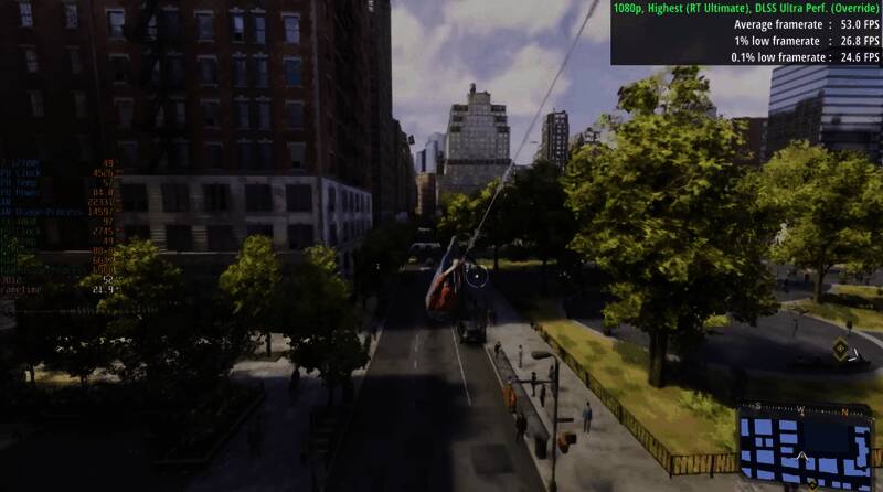 视频里,游戏原本只有360P的画质,但用了DLSS 4(超性能)后,能达到(放大到)1080P,而且在关闭光线追踪时可以达到大约90帧,而在开启光线追踪时也能有大约53帧表现。这说明即使在“相对较低”的硬件(例如RTX 4060显卡)上,这项技术也能提供既清晰又流畅的画面。