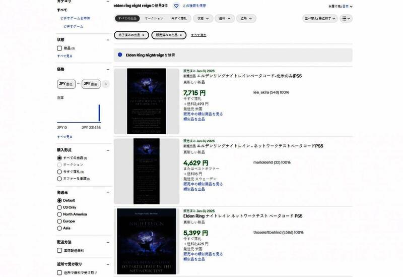此外查看eBay上已售出的测试资格可以看到,成交价最高的为7715日元(约合49.71美元,即人民币360.45元),相对来说玩家还是较为理智的。