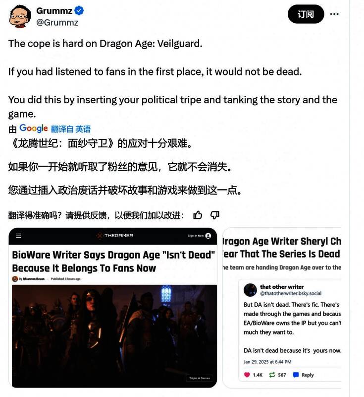 唯一侥幸逃过裁员的《龙腾世纪:影障守护者》编剧Sheryl Chee(被调往EA Motive开发《漫威钢铁侠》),在Bluesky上回应了粉丝。