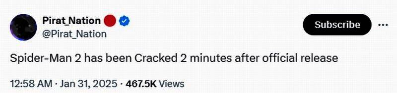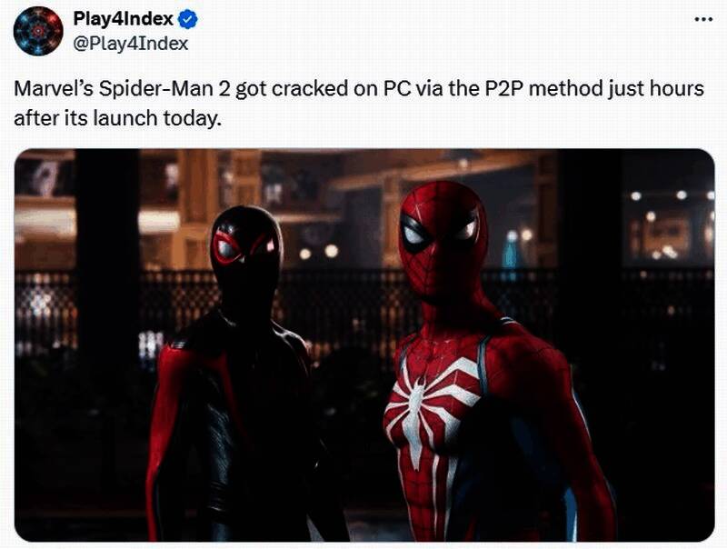 值得一提的是,《漫威蜘蛛侠2》PC版发售不到一天的时间里,就被黑客组织迅速攻破,网上也出现下载链接。本作没使用D加密技术,黑客的破解速度可是相当快。