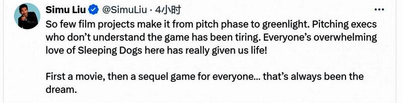 在甄子丹确认其主演的《热血无赖(Sleeping Dogs)》真人电影被好莱坞取消后,《尚气》主演刘思幕发推为这部电影的取消而感到惋惜。