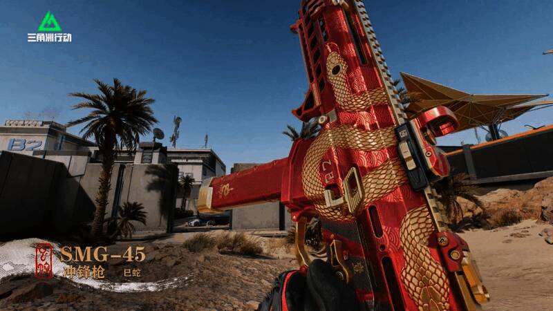 【巳蛇】系列外观采用喜庆的金红配色,枪体部分更多蛇年专属的金蛇纹理,让您的武器披上春节盛装。巳蛇贺岁,金光闪耀,祝各位干员烽火地带纵横驰骋,全面战场虎啸龙腾!